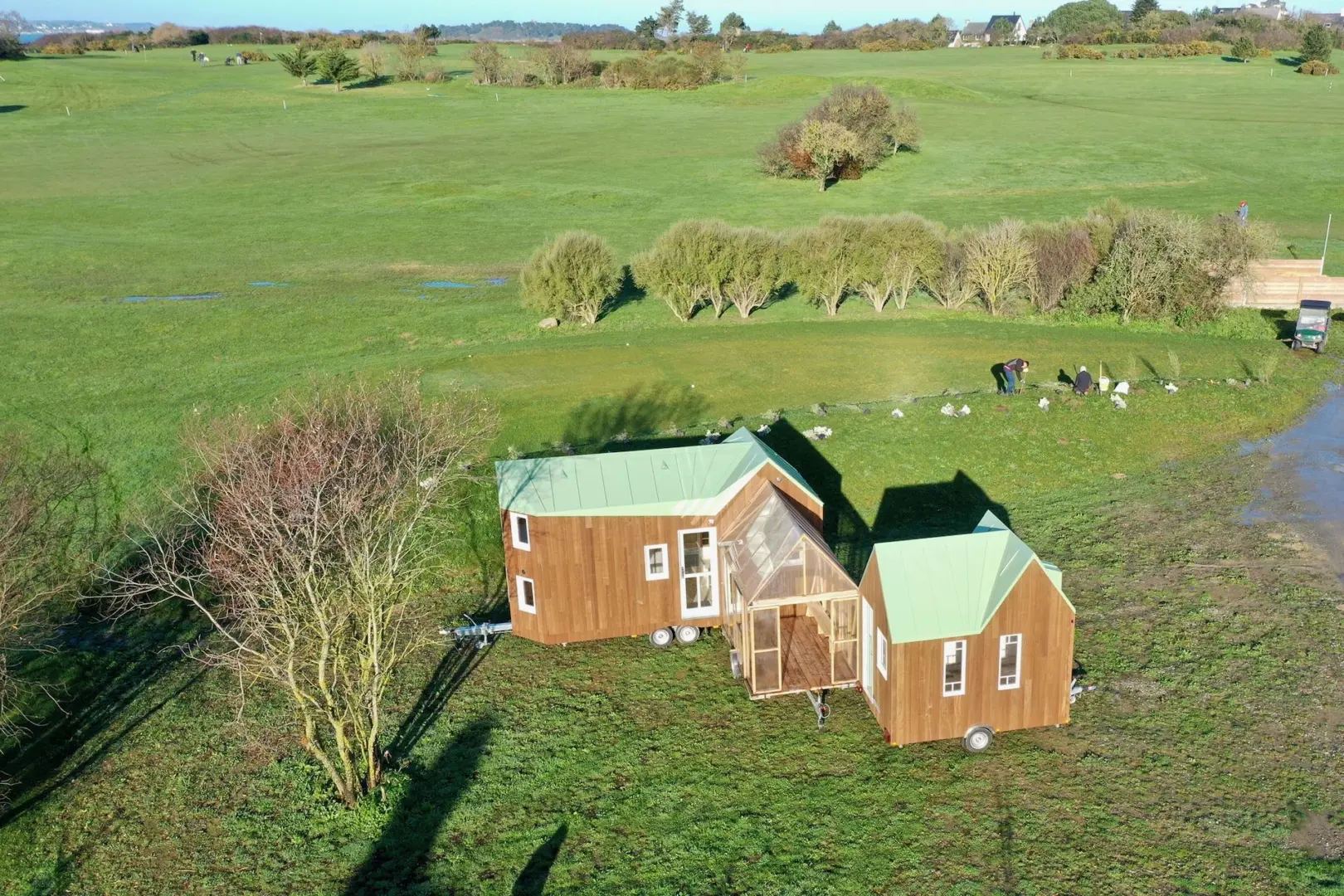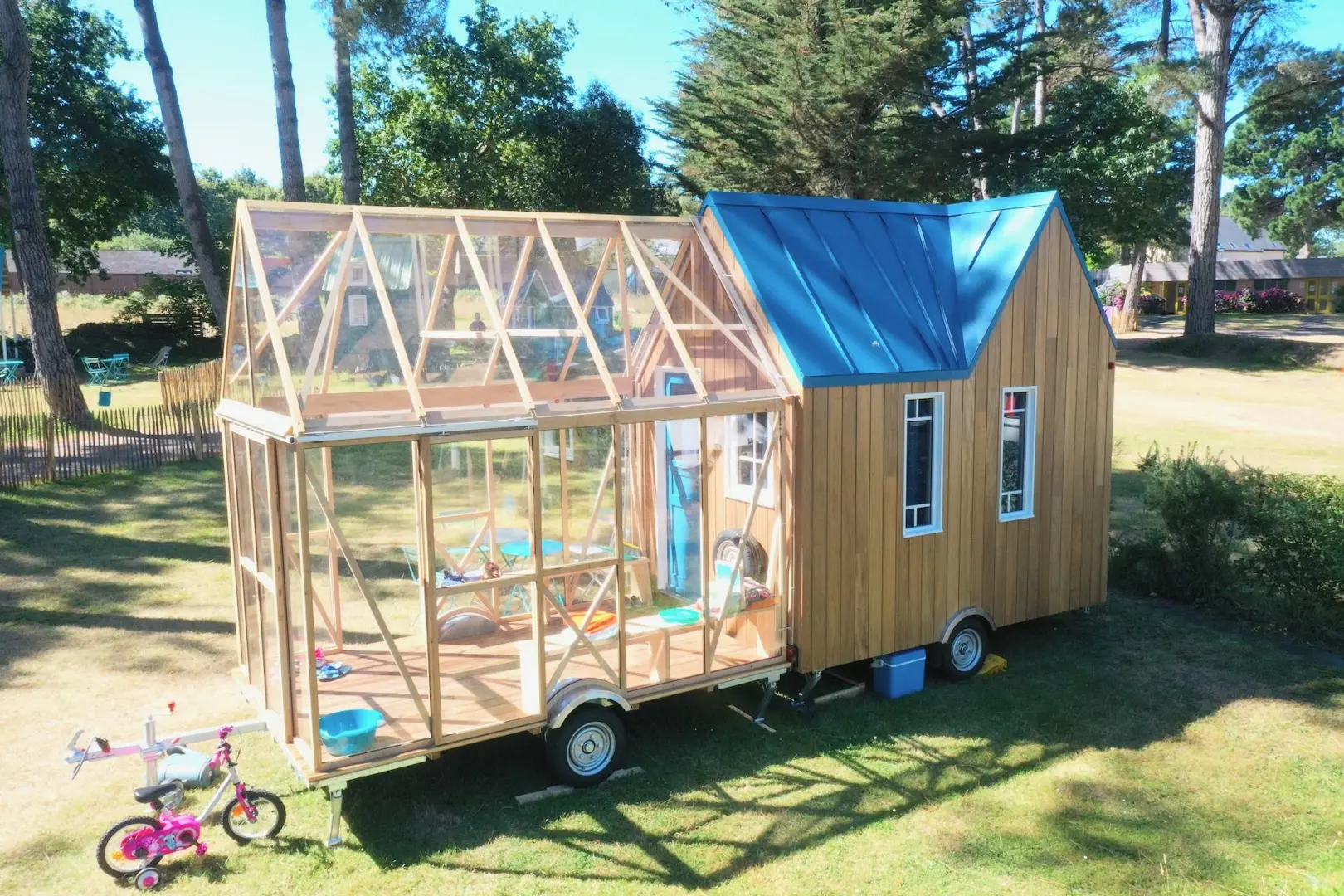 Cahute is a tool for modular habitat. We design and build connecting elements between houses, such as patios, conservatories, communal rooms, transitional elements between indoor and the outdoors.