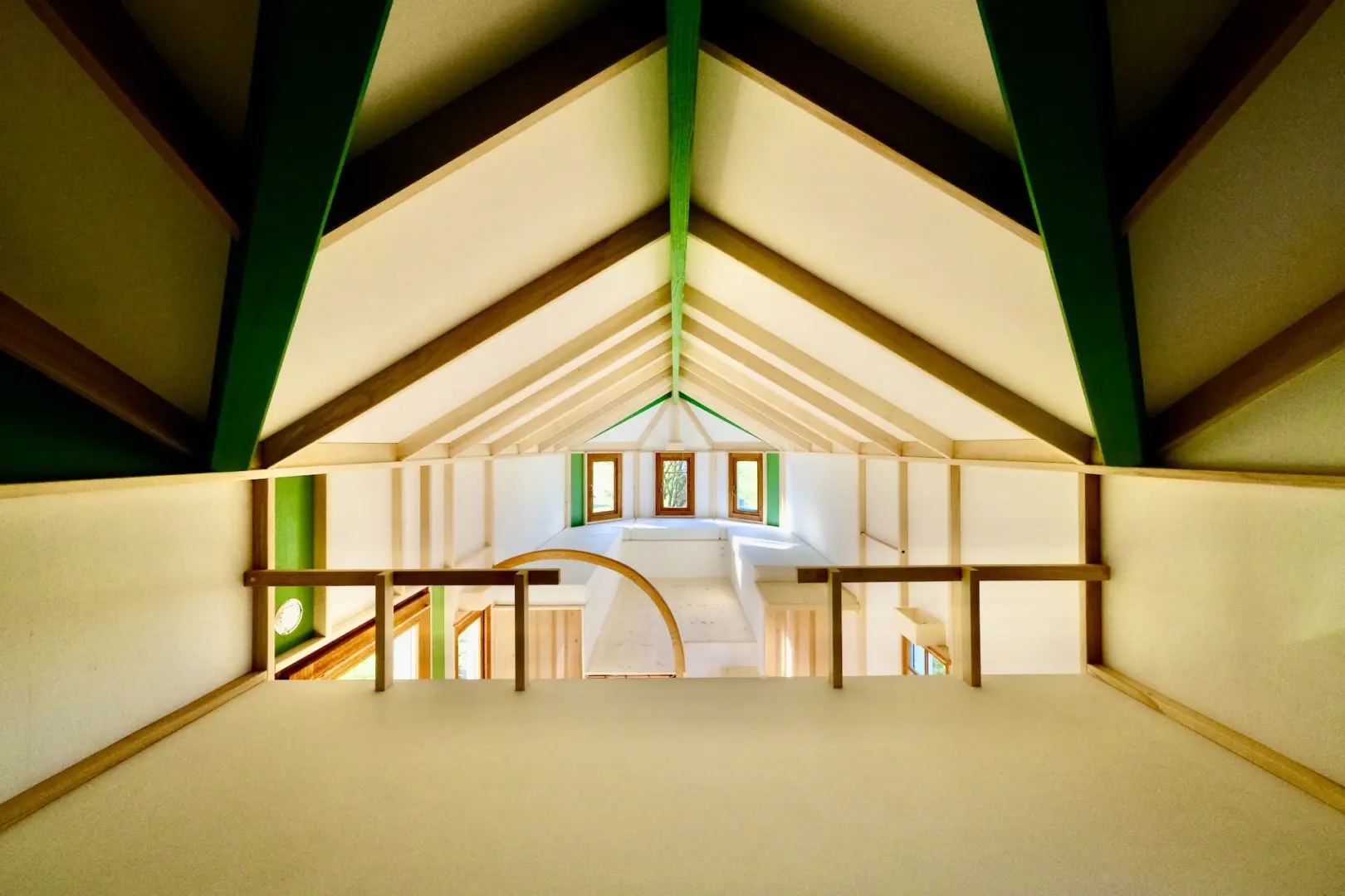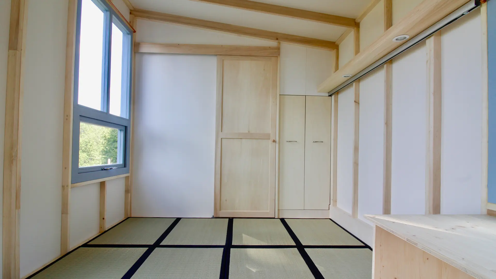 Roof and house frames, floor, foldable table, bench trunk, desk and bookshelf, all made in solid poplar.